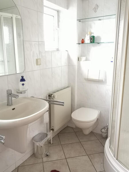 Badezimmer: Badezimmer mit Toilette und Dusche